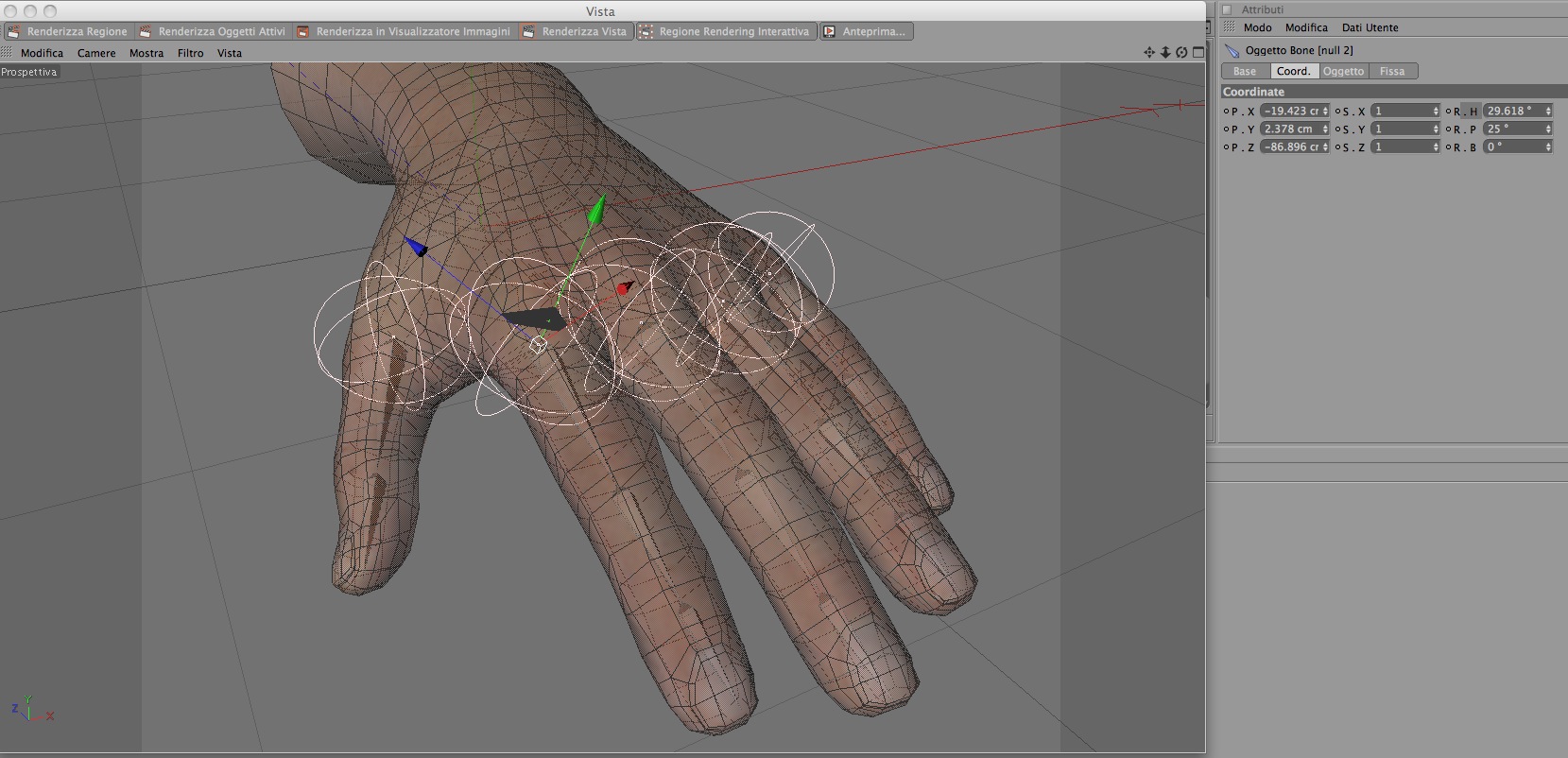 Per quanto riguarda il tuo ultimo problema postato, non mi è molto chiara la tua spiegazione, ma da quel che vedo penso che le bones delle dita non siano inserite correttamente in gerarchia... le hai inserite come figlie della bone della mano?