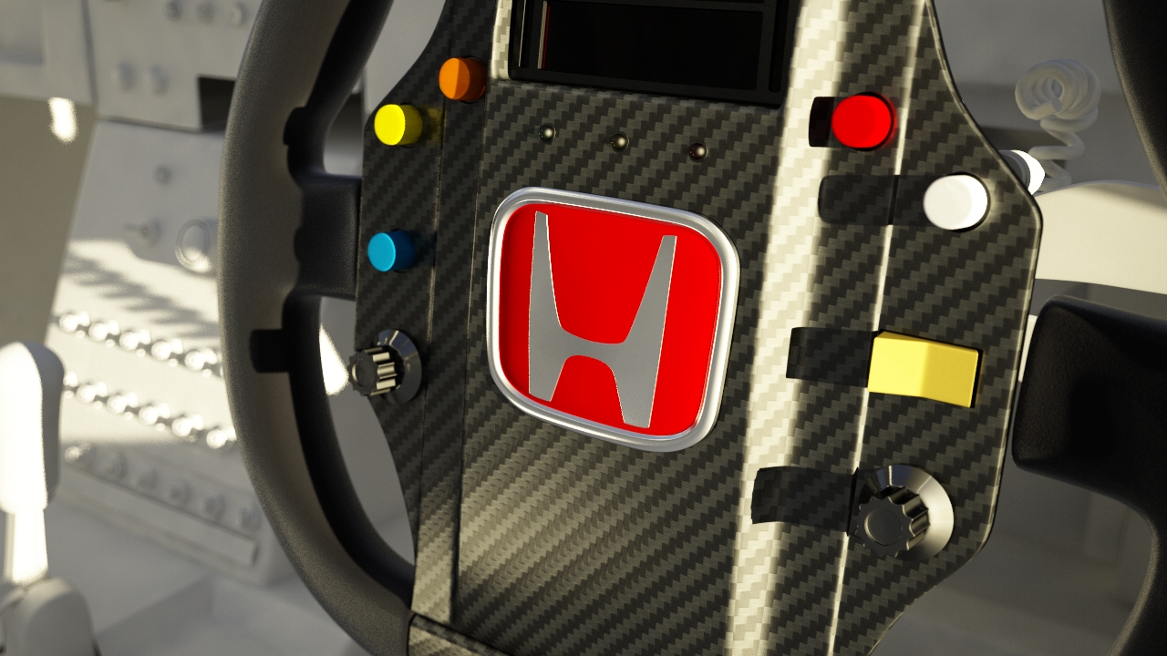 se vuoi che sia piu fotorealistico.. (ma comincio a dubitare che sia questo il tuo obbiettivo dato l'ultimo render e la tua affermazione di soddisfazione) devi rivedere i materiali, il carbonio, le plastiche, il cromato.. mancano sopratutto di riflessioni e specularita corrette, cioe oltre a regolare la riflessione dovresti dargli qualcosa da riflettere, alcuni colori sono troppo saturi per essere fotoreali, le luci andrebbero regolate meglio in itensita e colore.. e probabilmente si dovrebbe creare qualche ombra di quelle che si creano se gli oggetti stanno dentro ad un abitacolo..