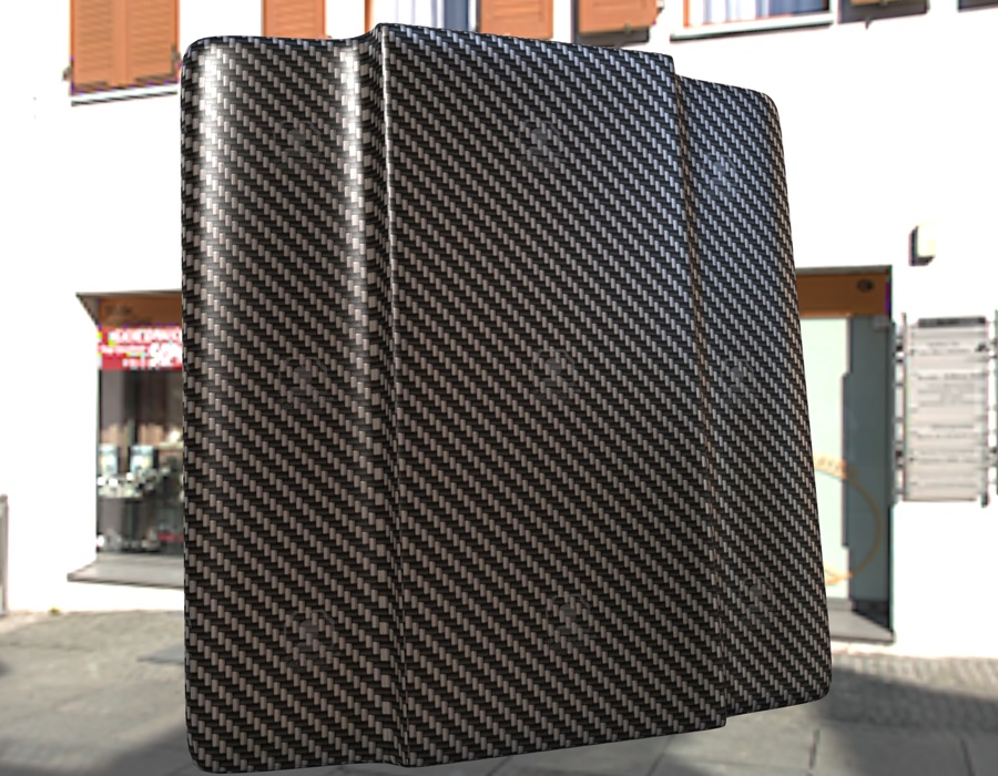 con la tua ultima immagine vedevo differenze esempio il cromato riflette cose che lo circondano, i pulsanti colorati sono molto meno saturi, la luce e le ombre sono diverse, alla riflessione del carbonio dovresti inserire una mappa per renderla come nella foto ... vedi esempio fatto velocemente con ar3