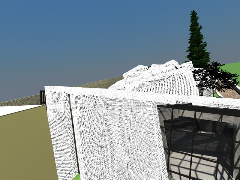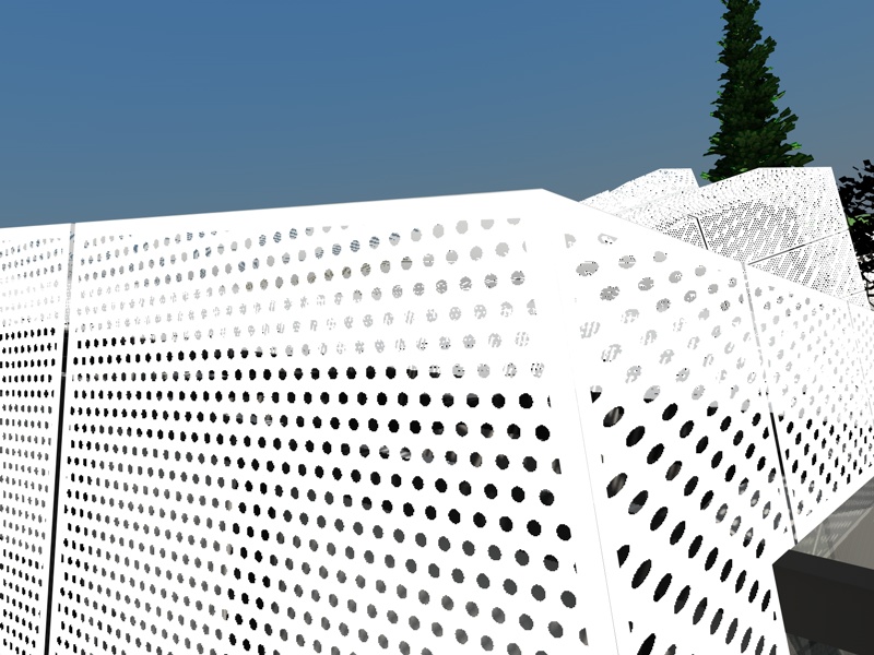 ecco il mio problema: sto realizzando un edificio di vetro coperto da una LAMIERA FORATA. Mi è stato consigliato di realizzare la foratura tramite l'utilizzo del canale alpha e così ho fatto. Il risultato ottenuto, da vicino può andare bene,e anche la quantità di luce che entra nell'edificio è all'incirca corretta.