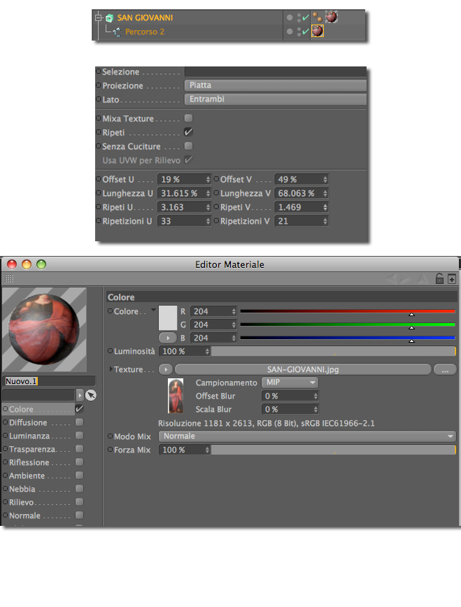 - come impostare in genere le immagini nei materiali: cubica, uvw, piatta.