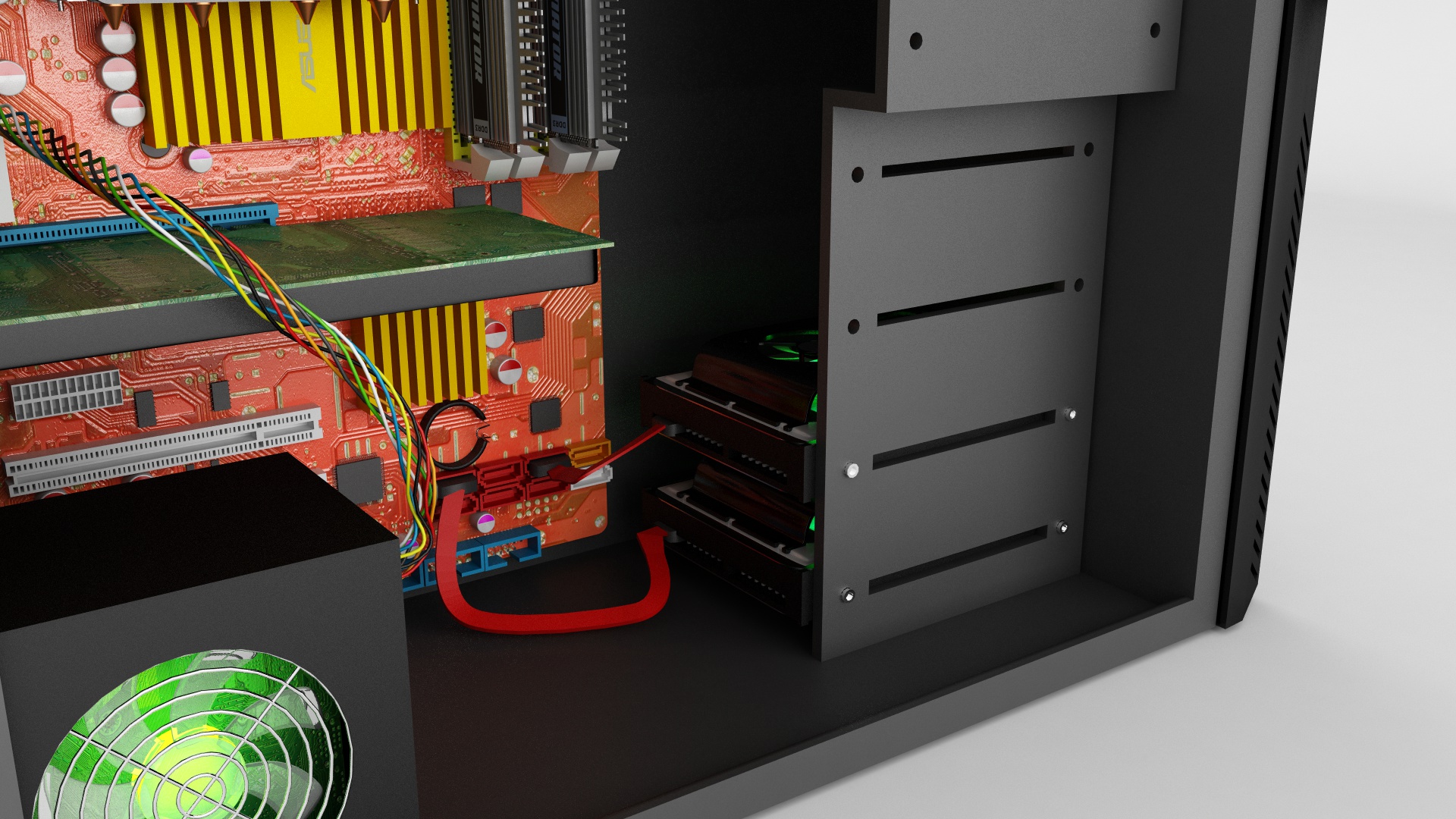 altro up..ho fatto il rendering in alta qualità :D ho anche corretto i cavi sata (ringrazio filippo92)...e ho aggiunto delle ventole esterne :D...ci avviciniamo ai render definitivi :D