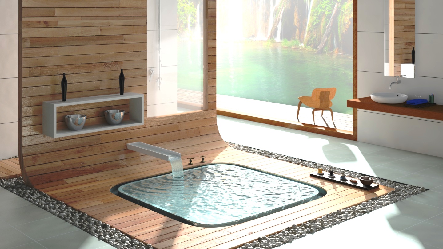 Bello! :D Sempre meglio Morph! :D Comunque ci sono delle cose che ritoccherei... Per esempio abbasserei di un pelo lo speculare del legno intorno alla vasca e magari anche il glossiness(c'è in AR? Io sono abituato con Vray...). Poi curerei di più il legno del finestrone e del lavabo... non si notano venature, è un po' surreale e, come hanno già detto, forse troppo saturo.. Per il resto ottimo lavoro! :D Quoto tutti per i sassi, sono spettacolari! :shock: :D