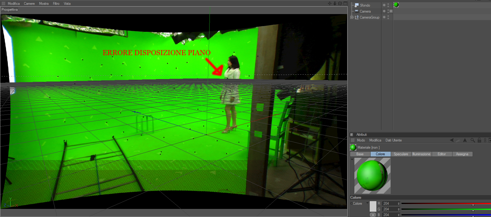 Quello che sto facendo è integrare una ripresa fatta in greenscreen in una scena 3D.