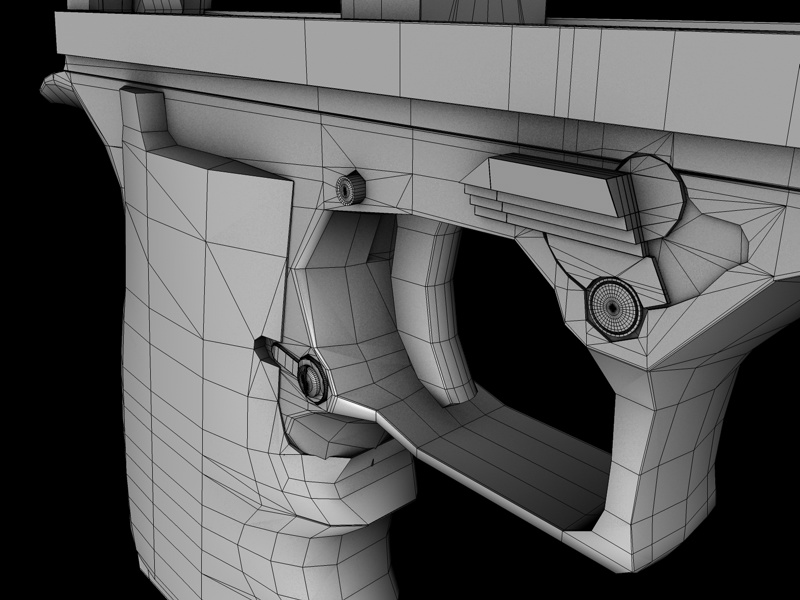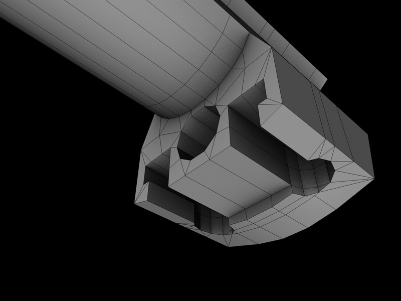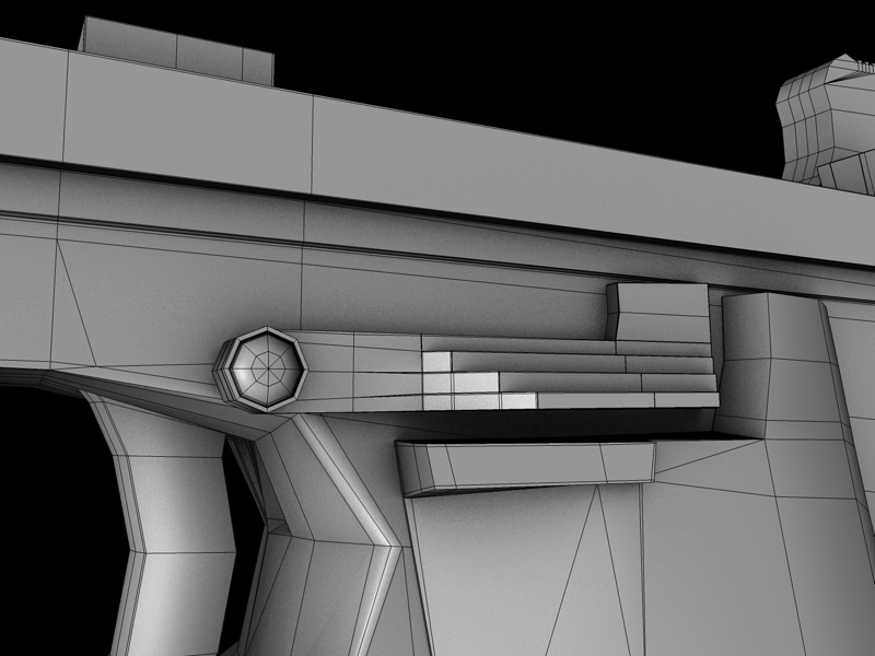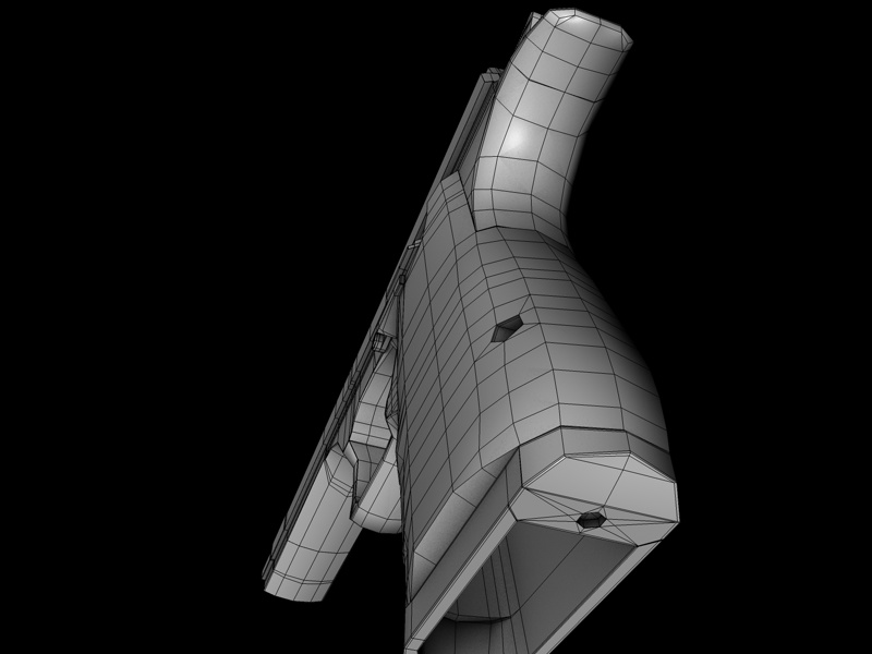 ci sono comunque degli n-angoli che nei wire non vede.. devonancora ottimizzare un po e riparare le compenetrazioni poligonali tra il manico di plastica e il corpo..