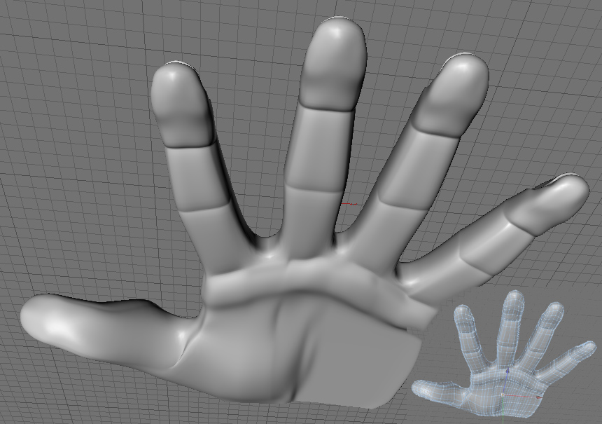 ho spostato inoltre alcuni punti del pollice per renderlo un pelino meno abbozzato e piu definito, e poi ho aggiunto la parte inferiore... un paio di estrusioni piu una interna, scala dei punti, e voilà :D
