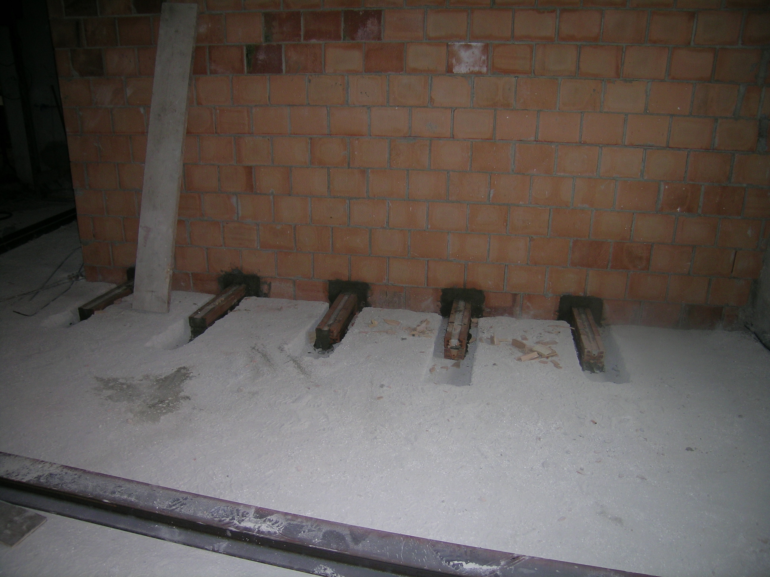 comunque era stata realizzata una parete in bimattoni da 12 .nessuna trave di collegamento. solo i cordolo all'altezza del solaio di sbarco.