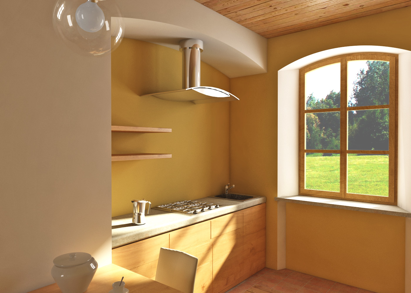 bozza di render per un bilocale ricavato in un edificio storico. Mancano un po di oggetti e materiali, eseguito con vray 1.2 tempo 15 minuti di calcolo.