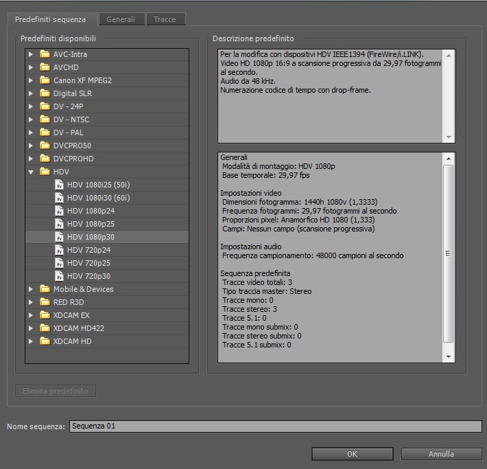 se è questo io di solito spunto la voce "come impostazioni sequenza"