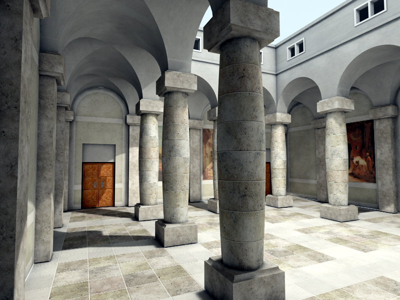 Cosa hai usato per fare il volumetria? una luce a spot? perche' ti sta bruciando un po troppo la parte centrale del patio....