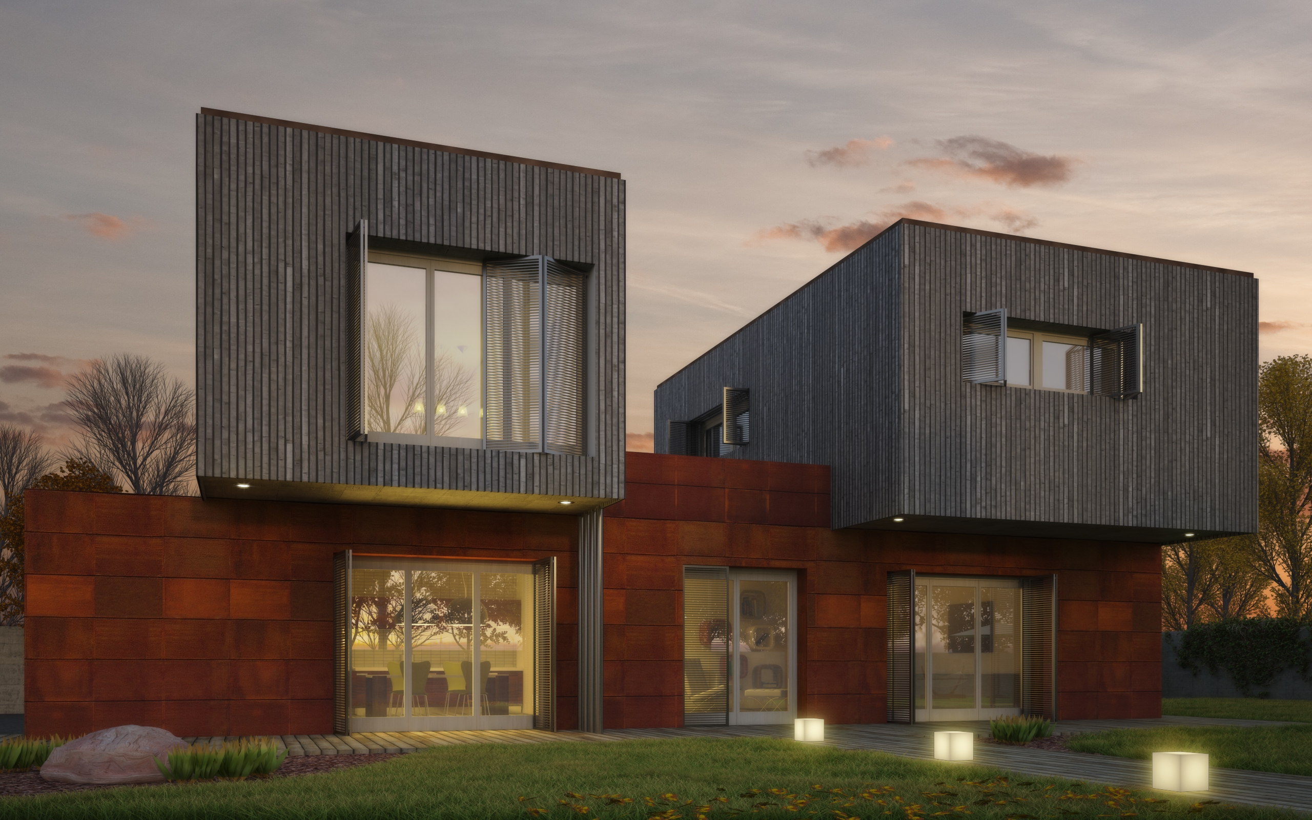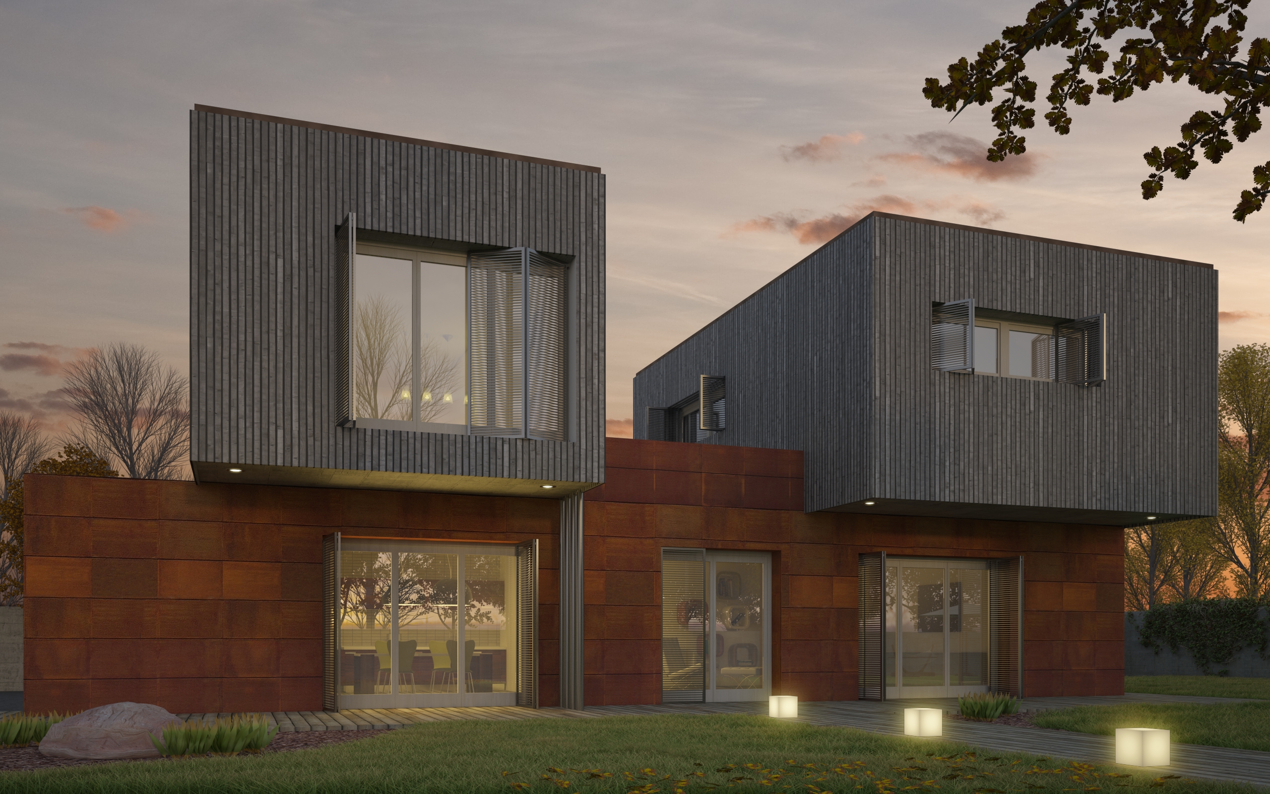 molto bella ! ma per il corten hai mappato ogni singolo pannello per dare questo effetto irregolare?