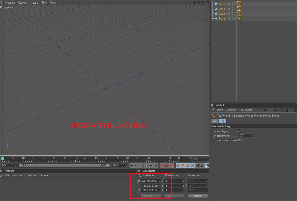 esempio, ho fatto un pò di elementi che di default vengono messi all'origine, poi li ho spostati insieme nel mondo (come la tua scena lontanissima dall'origine ad esempio)