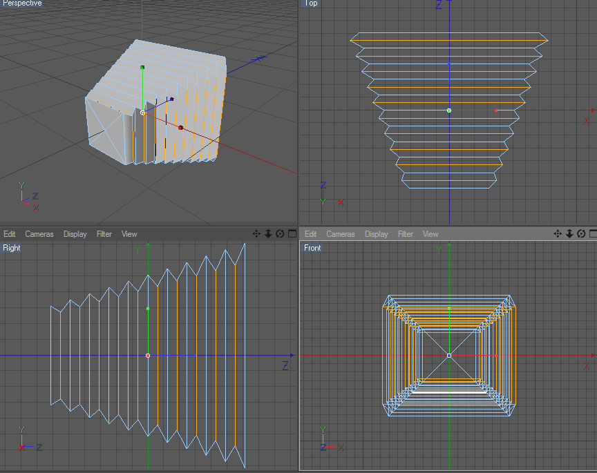 A questo punto ho selezionato i vari loop delle suddivisioni verticali in modo alternato, ottenendo questo: