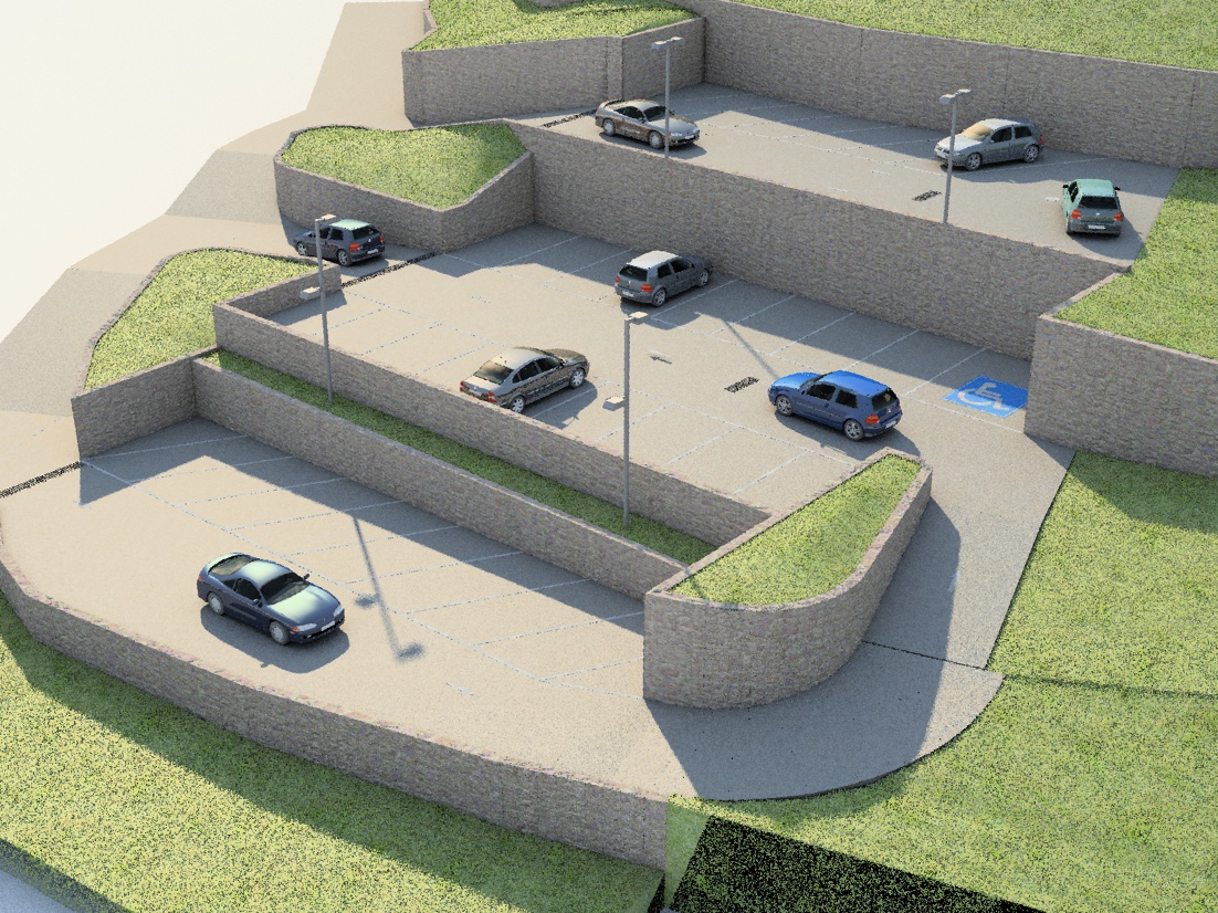 mi sono avventurato in un nuovo lavoro che mi hanno commissionato (modellazione e viste renderizzate di un parcheggio) nell'utilizzo del motore fisico della R13