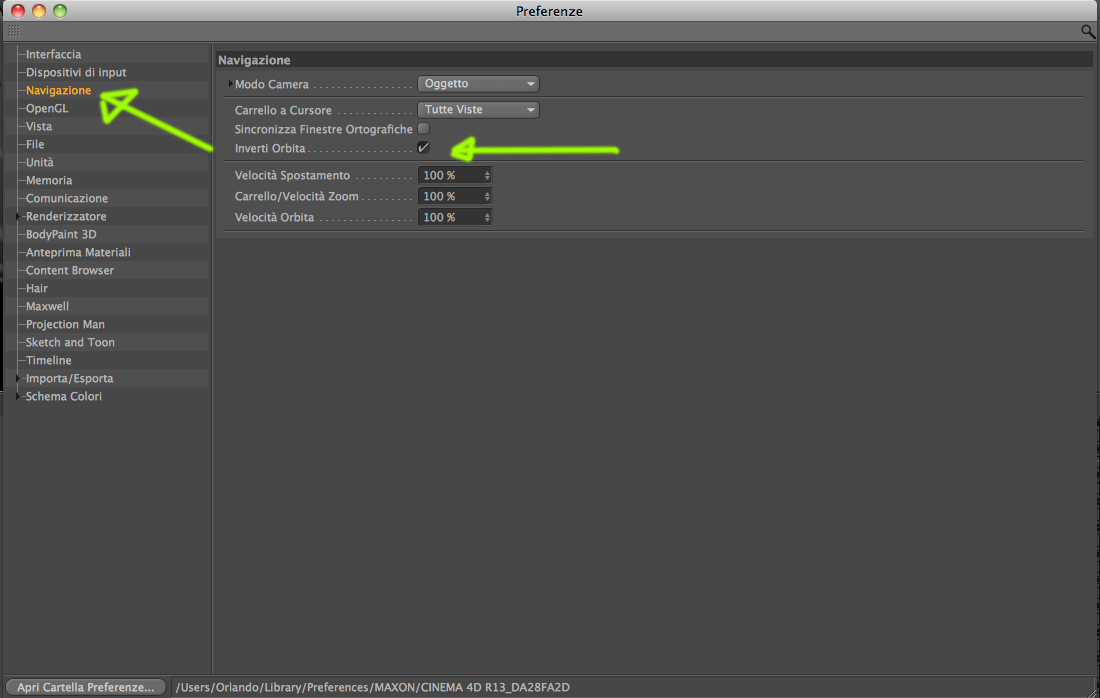x invertire l'orbita basta andare in preferenze, navigazione e spuntare "inverti orbita" i movimenti saranno al contrario