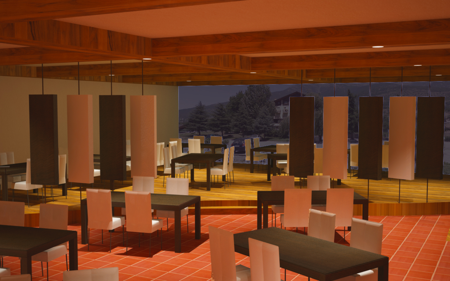 Ciao a tutti sono uno studente alle prime armi e mi sto cimentando nella realizzazione di un render di un ristorante solo che come potete vedere non è che sia un grande cosa e non ho idea di come fare per migliorarlo...avete consigli???