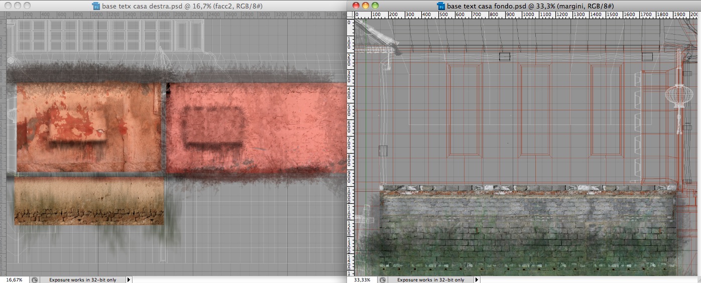 Per quanto riguarda le facciate io intendevo semplicemente fare una texture per ogni lato, da assegnare all'oggetto tramite selezione di poligoni. Quando mi trovo a fare cose del genere solitamente faccio un bello screenshot (o render software) dell'oggetto in vista frontale, porto tutto in fotosciop e disegno quello che mi serve, sapendo che una volta riapplicato il materiale alla selezione di quella faccia, tutto andrà al suo posto. Poi chiaramente va visto se questo metodo ti da la libertà che cerchi o si adatta a quello che vuoi ottenere!