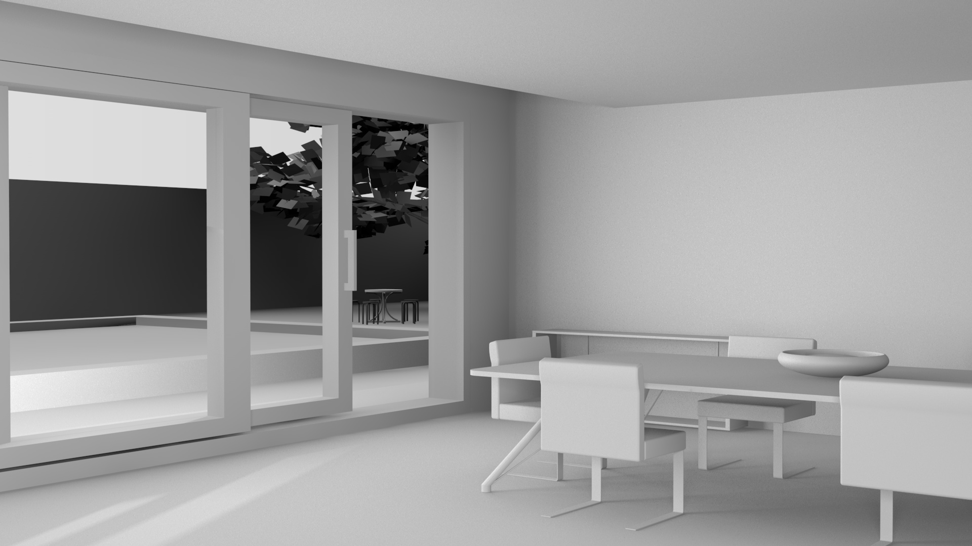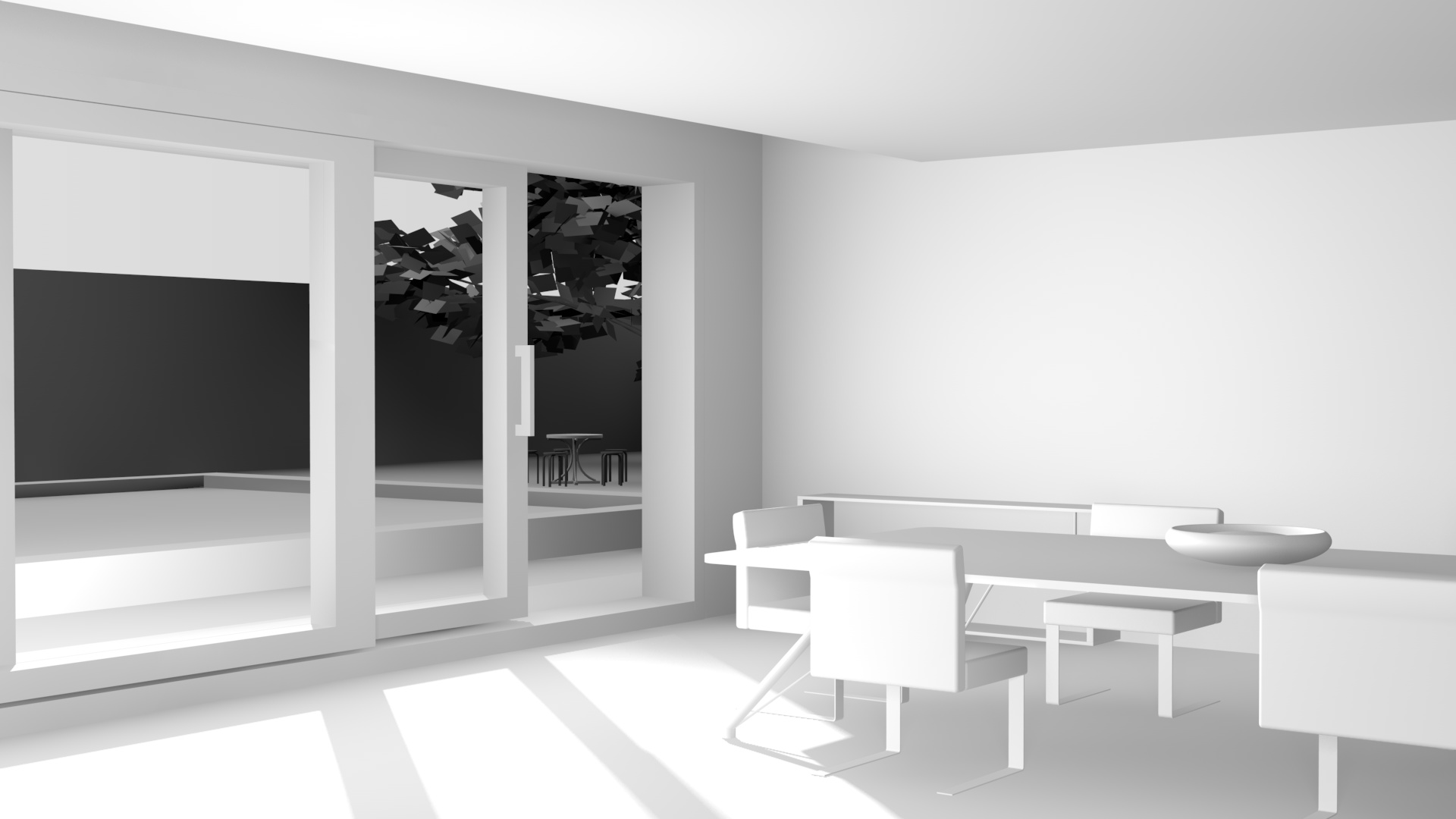 1) metti le ombre alla luce sulla portafinestra e lasciala parallela alla porta