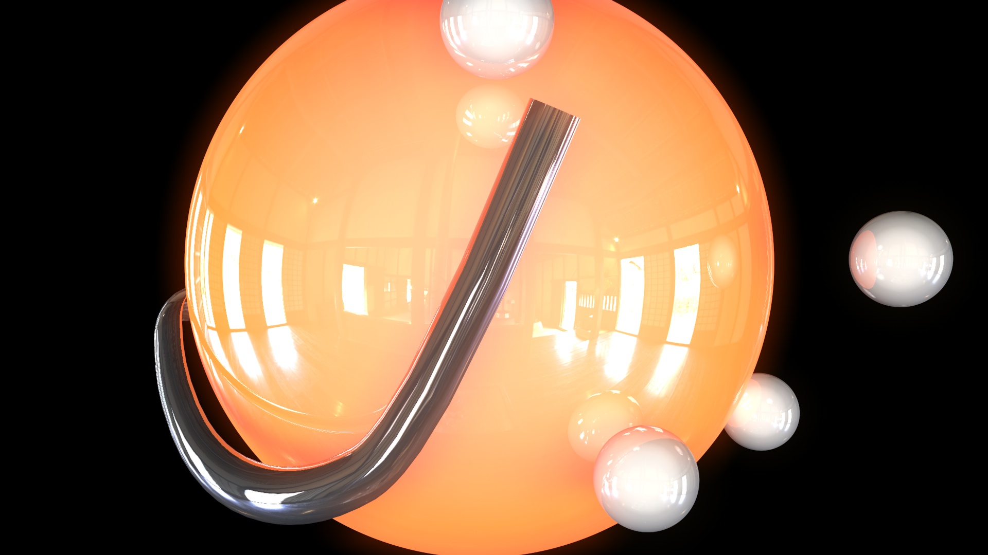 Cmq già sei a buon punto: non male sino a dove arrivato . C'è da sistemare un pò la riflessione della sfera più grande o agire sull'illuminazione, però sei sulla buona strada. Una volta sistemate le spirali e animate puoi passare ad aggiustare l'illuminazione........