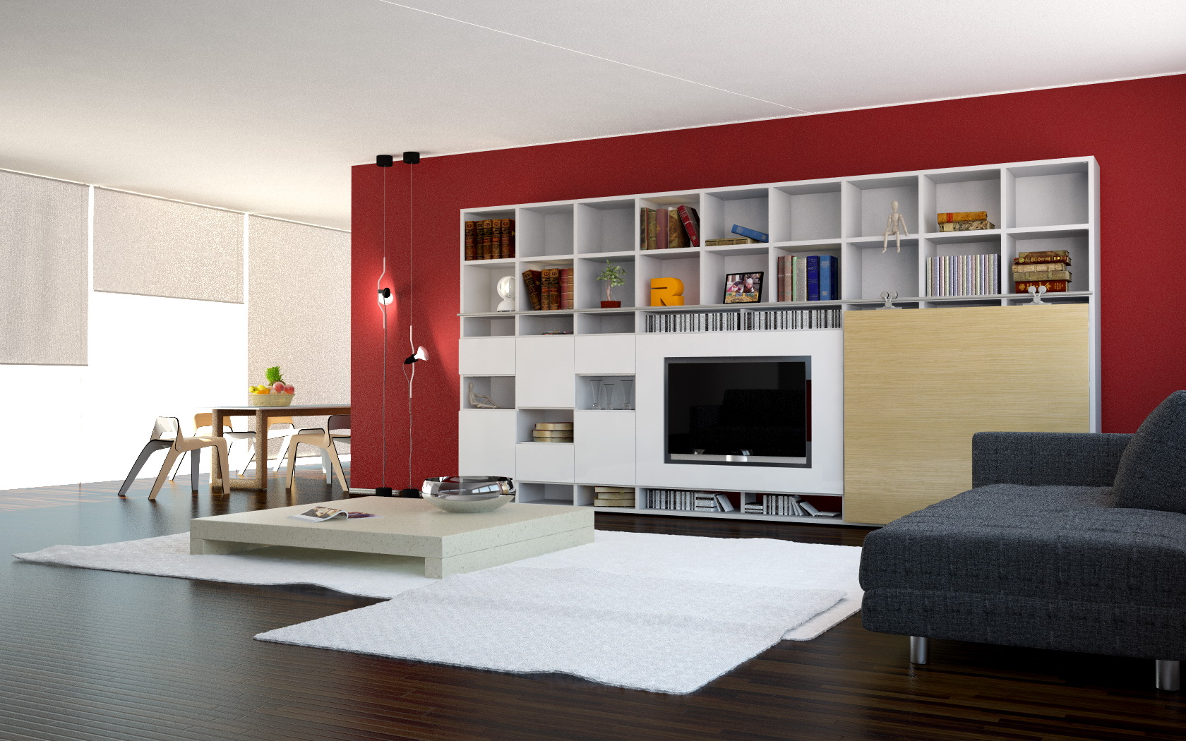 mmmm...qualcosa che non va c'è: il tavolino infatti, sotto dovrebbe essere in ombra visto che non ha aperture verso la finestra, ma bensì verso la TV diciamo...hai messo luci che provengono da quella parte?