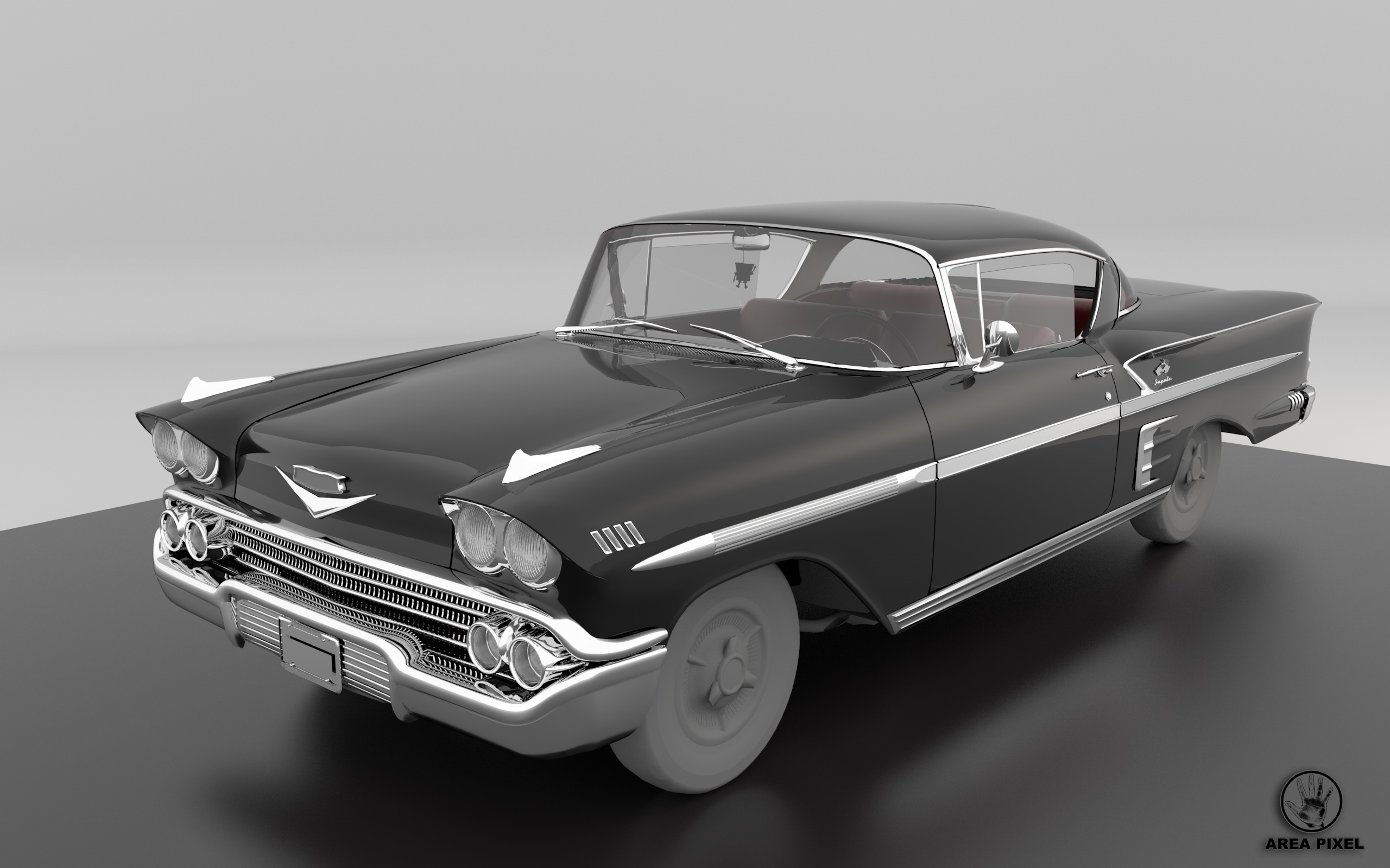Per ora sto ancora aggiustando i poligoni-selezioni e aggiungendo i materiali sulla Chevrolet Impala 1958.