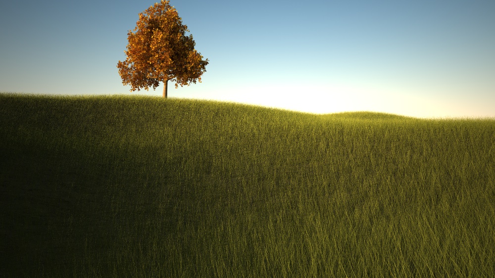Non prendertela, ma ha ragione Nexzac che ha centrato la critica. Eppoi una scena deve anche raccontare qualcosa, dare l'idea di qualcosa. Solo, ad esempio, aggiungendo un gruppetto di alberi e aggiungendo qualcosa nell'erba (un carretto, un trattore, una persona che cammina: c'è solo da scegliere....) dà una fisionomia tutta diversa: dà l'idea di una panorama campestre. Qui, invece, l'unica idea che si coglie è che c'è un'albero capitato lì per caso :) :) :) .