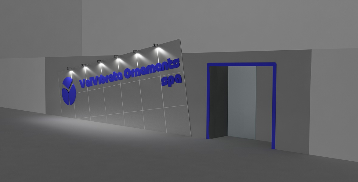 Inserisco lo stand in un padiglione e come base lo circondo di luci area con decadenza poi una luce area sopra. Per finire metto i faretti con la luce spot puntata su logo o prodotti.