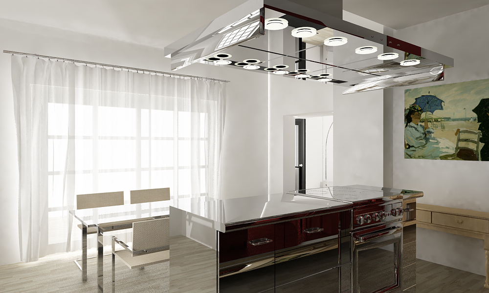 Non mi dispiace ma forse l isola e la cappa hanno troppo acciaio. Io lo farei spazzolato o satinato se vuoi rimanere con l acciaio altrimenti un bel laccato lucido