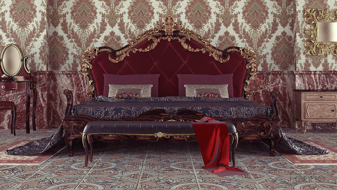 qui la prima cosa che mi balza all'occhio..e che trovo spezzi notevolmente la scena è la coperta in velluto in primo piano...sembra staccare completamente dal resto del render...per intenderci mi da l'impressione di essere stata inserita in post per intenderci....credo sia colpa del tipo di luce che gli riflette contro...forse se gli cambi posizione cambia l'effetto non so...per il resto ottimo come sempre...se hai voglia e tempo prova a rivederla che secondo me con qualche ritocco diventa perfetta