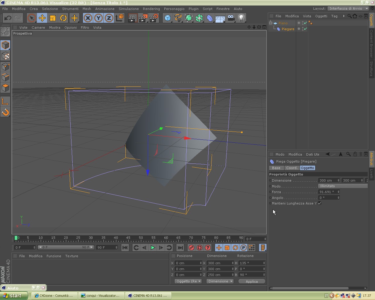 - al deformatore Bend dà queste impostazioni: H 90°, P 45° e B 0