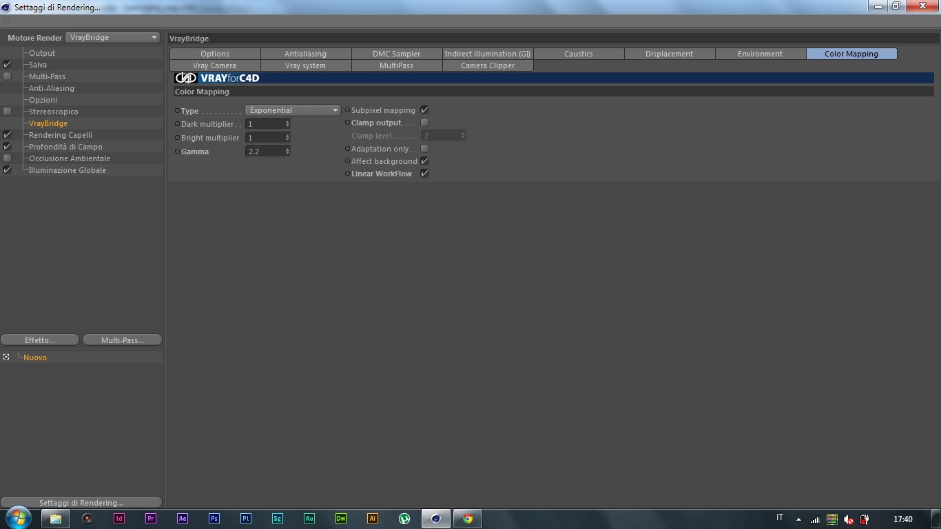 - il Color Mapping non lo hai di fatto attivato: i valori di Bright e Dark non dovrebbero essere uguali: i tuoi sono tutti e due a 1.......