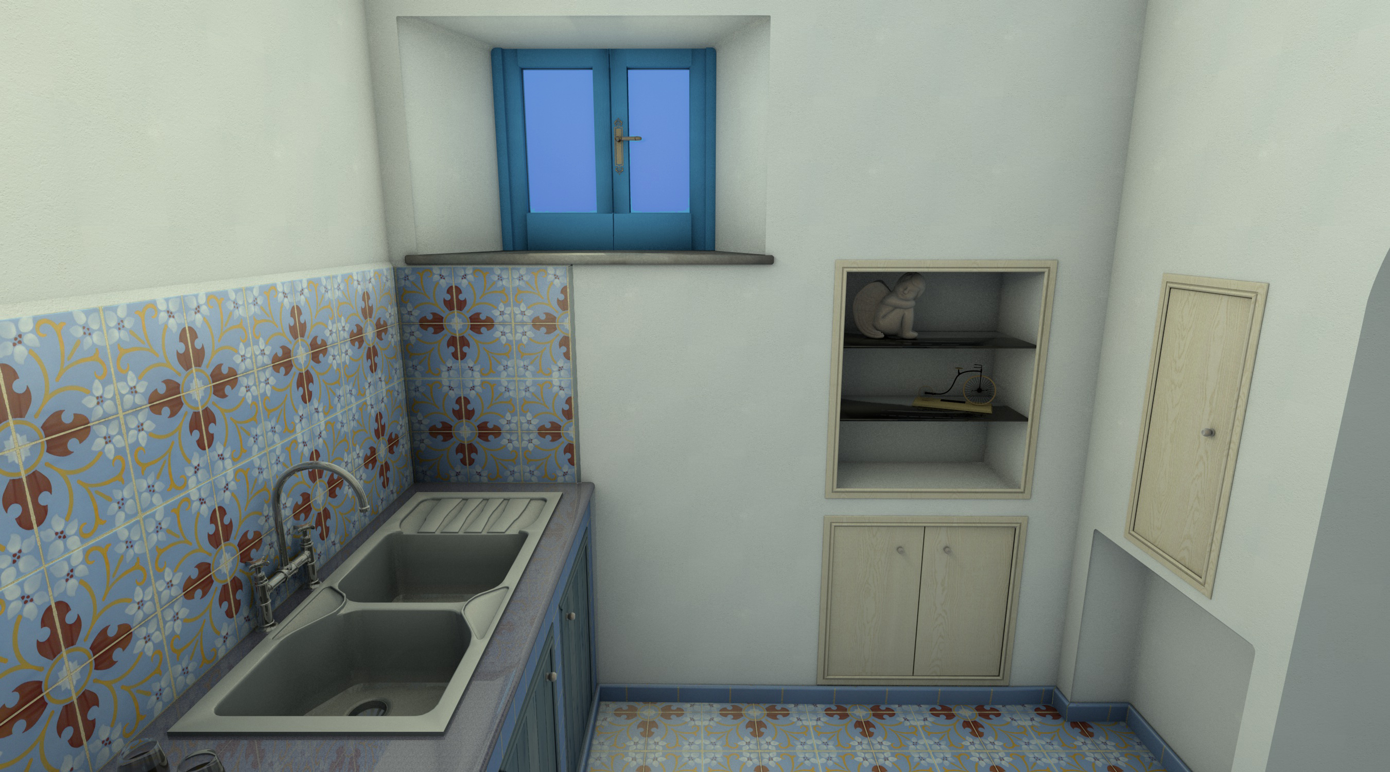 salve a tutti, vi mostro il mio promissimo render d'interno, si tratta di una cucina in muratura,