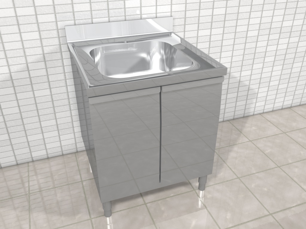 Per l'illuminazione ho usasto una luce infinita al 120% senza ombre per illuminare globalmente l'oggetto, poi due luci omni al 105 % con ombre morbide ma non ho perso molto tempo sull'illuminazione perchè nella scena non c'è tetto, finestre o altro solo un pavimento e un muro dietro al lavello.