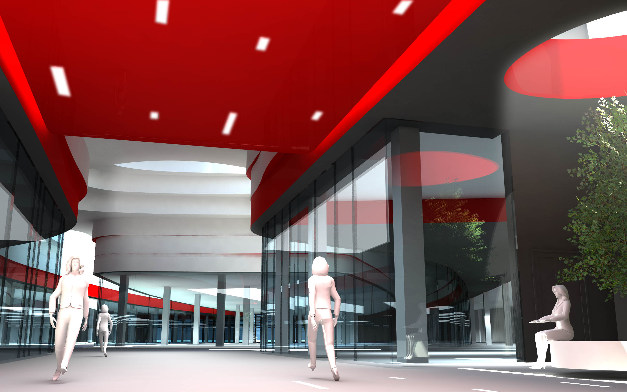 come faccio ad illuminare quest'ambiente in modo che i locali dietro le vetrine appaiano illuminati? io ho usato le luci area disposte su più file, ma mi danno un'illuminazione troppo netta sul pavimento, che viene poi riflessa sui vetri! vorrei un'illuminazione più diffusa ma nn so che cosa utilizzare o che parametri impostare!