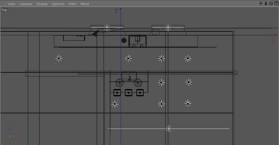 Ho allegato un' immagine del mio interno renderizzata senza materiali, ho modellato tutto io tranne i fiori, e una vista top in cui vedete le luci utilizzate: