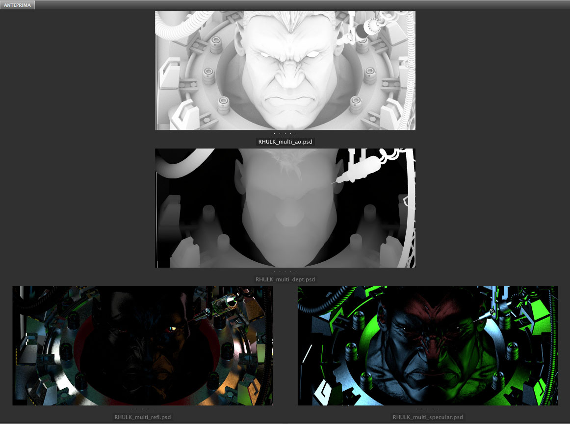 Ok, ultimo screen prima dell'immagine finale: i passaggi esportati dal multipass che ho usato per compositare in AfterEffects!