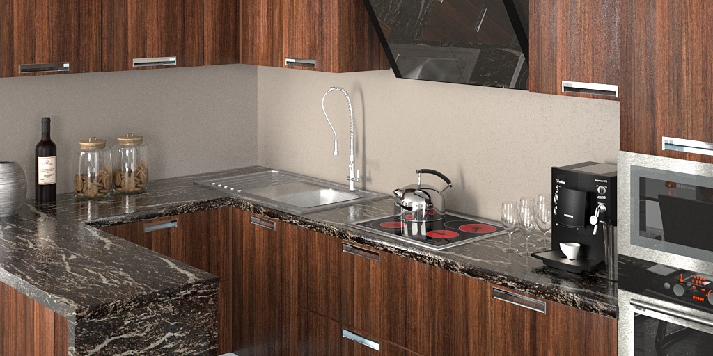 la cucina non e stata modellata da me e credo che le misure siano reali, io ho creato la scena l oggettistica in C4D l illuminazione ed i materiali. questo e solo un test per verificare maxwell.