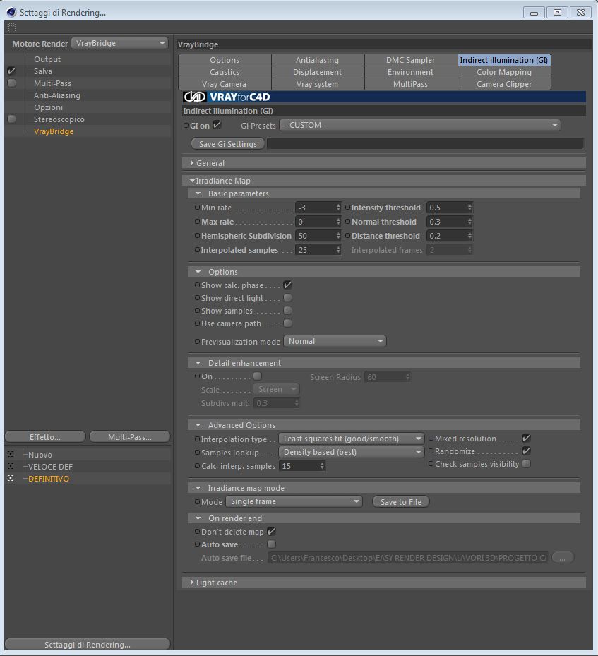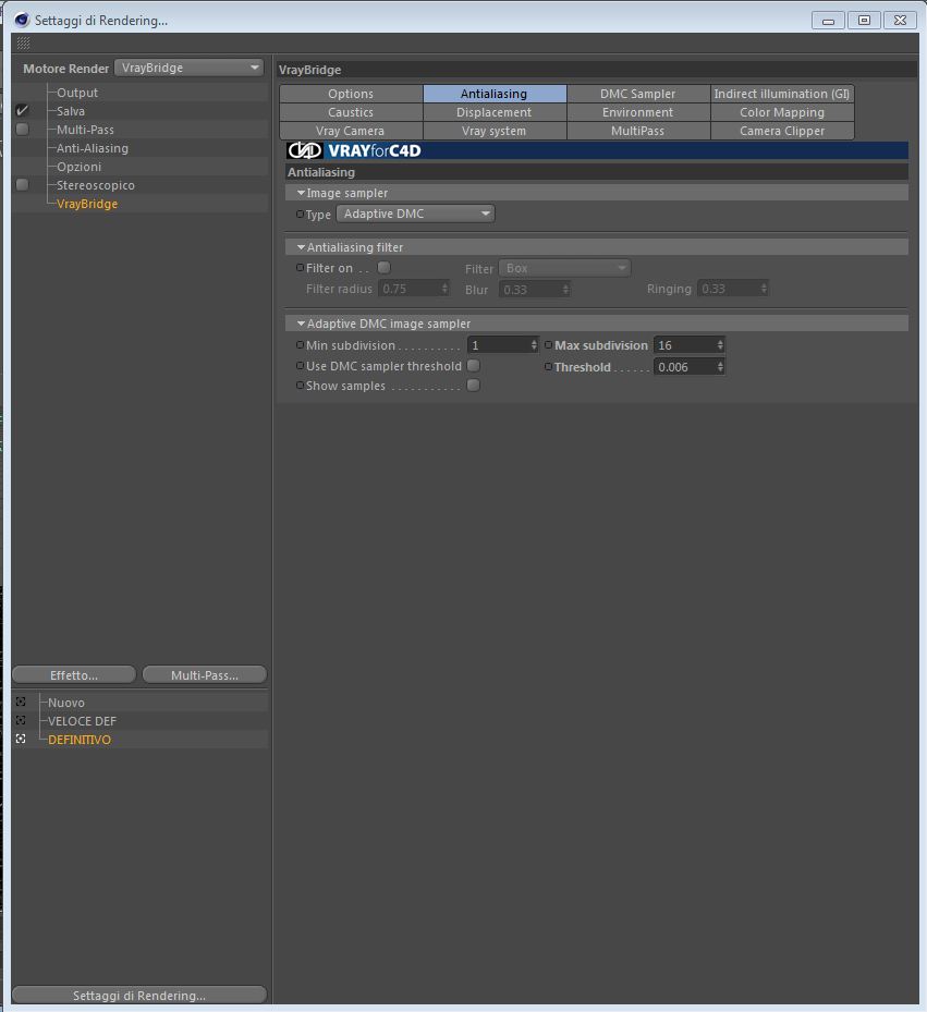 Ecco di seguito le impostazioni come mi avete chiesto...