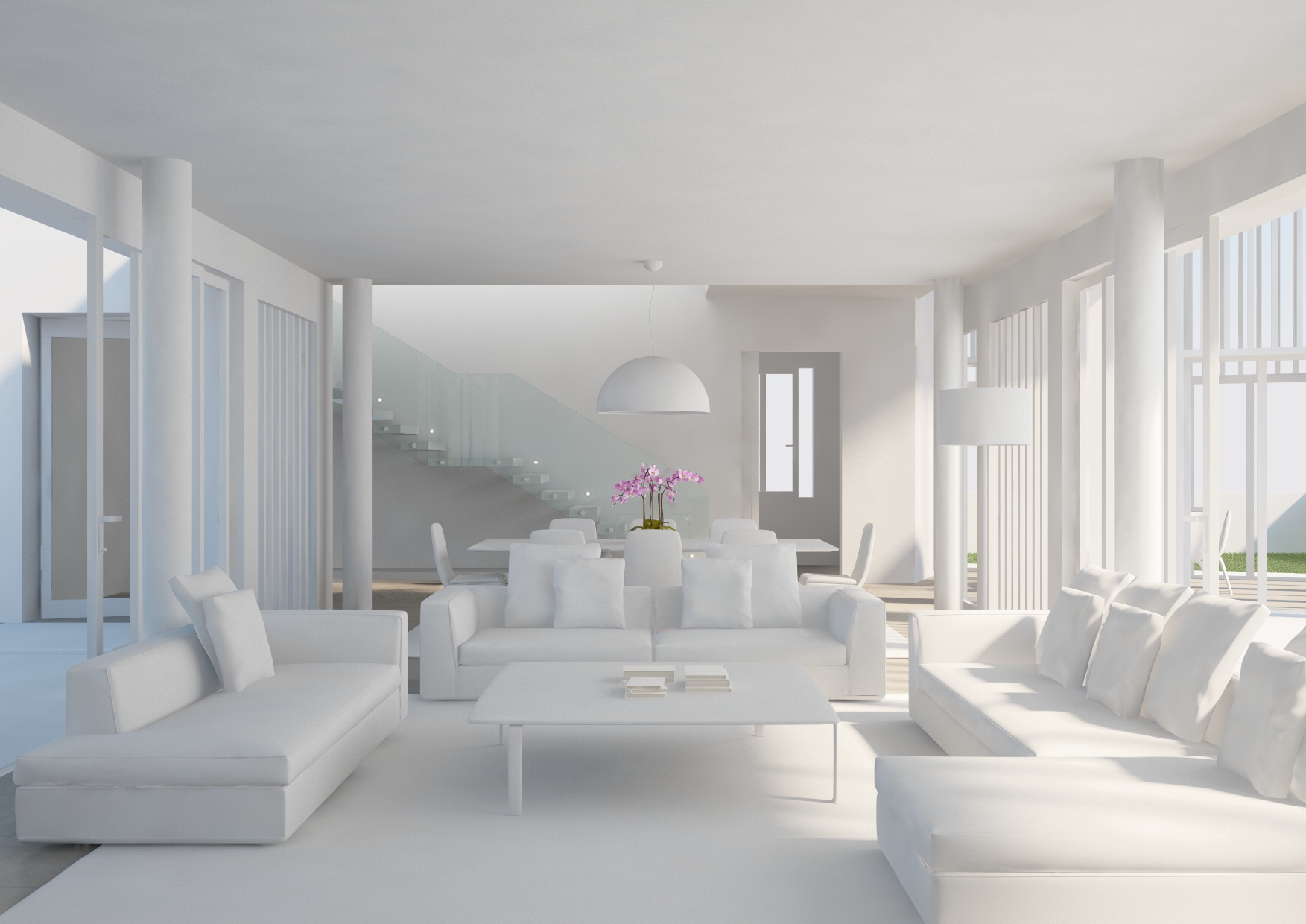Per il discorso efficienza energetica, il freddo non è un problema perchè dove verrà realizzata questa villa in inverno ci scende massimo a 20°, il problema sarà l'estate, ma sicuramente le varie aperture verranno schermate con dei tendaggi che, per motivo di tempo, evito di mettere nel rendering.