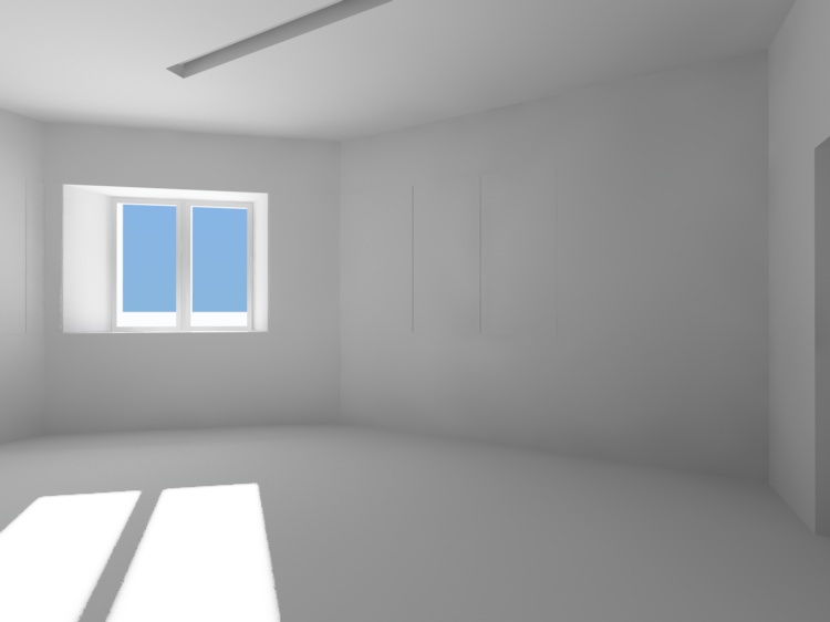 spero di non essere brutalmente contraddetto rispetto a quanto ho affermato io...posto due immagini della solita stanza, dopo le ultime variazioni : uso di cielo fisico, luci area alla finestra e fuoricampo con ombre attivate, decadenza quadratica inversa, intensita' fotometrica.
