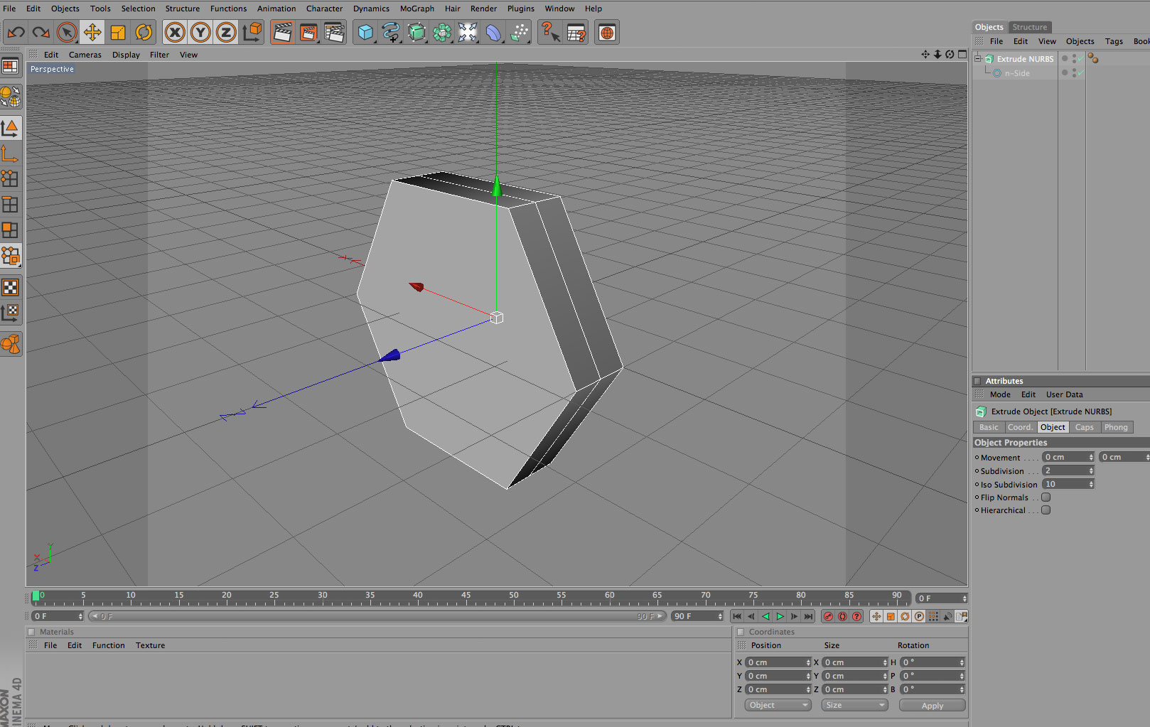 Poi puoi cominciare ad usare gli strumenti di modellazione (magari attivando l'interfaccia apposita, così hai i comandi a portata di mano!) per estrudere, tagliare, ecc. Può essere utile attivare l'hypernurbs per vedere l'effetto delle trasformazioni.