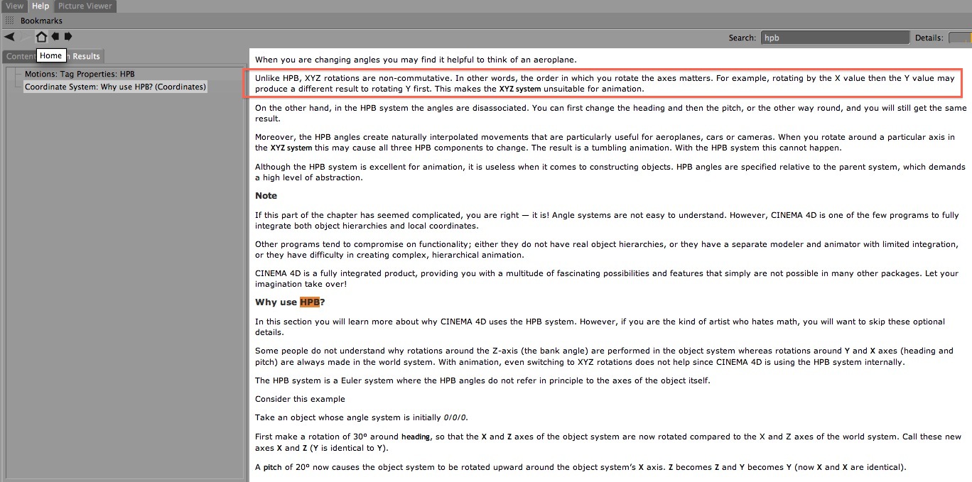 Detto questo, che io ricordi non esiste una preferenza per impostare di default l'altro sistema, puoi farlo sui singoli oggetti ed impostarlo come default (dal menù Edit dell'attribute manager) ma lo strumento Ruota lavorerà cmq sempre in HPB.
