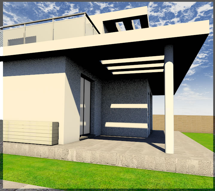 Tuttavia il risultato è sicuramente migliore di prima in quanto il prato sembra meno sintetico e più naturale. L'errore che facevo di attribuire la texture erba all'oggetto Pavimento l'ho capito solo nel momento in cui ho applicato la texture ad un oggetto Piano. Il risultato è di gran lunga migliore! Con la mappatura piana però ho avuto dei problemi mentre il risultato che vedete è ottenuto con quella Cubica.