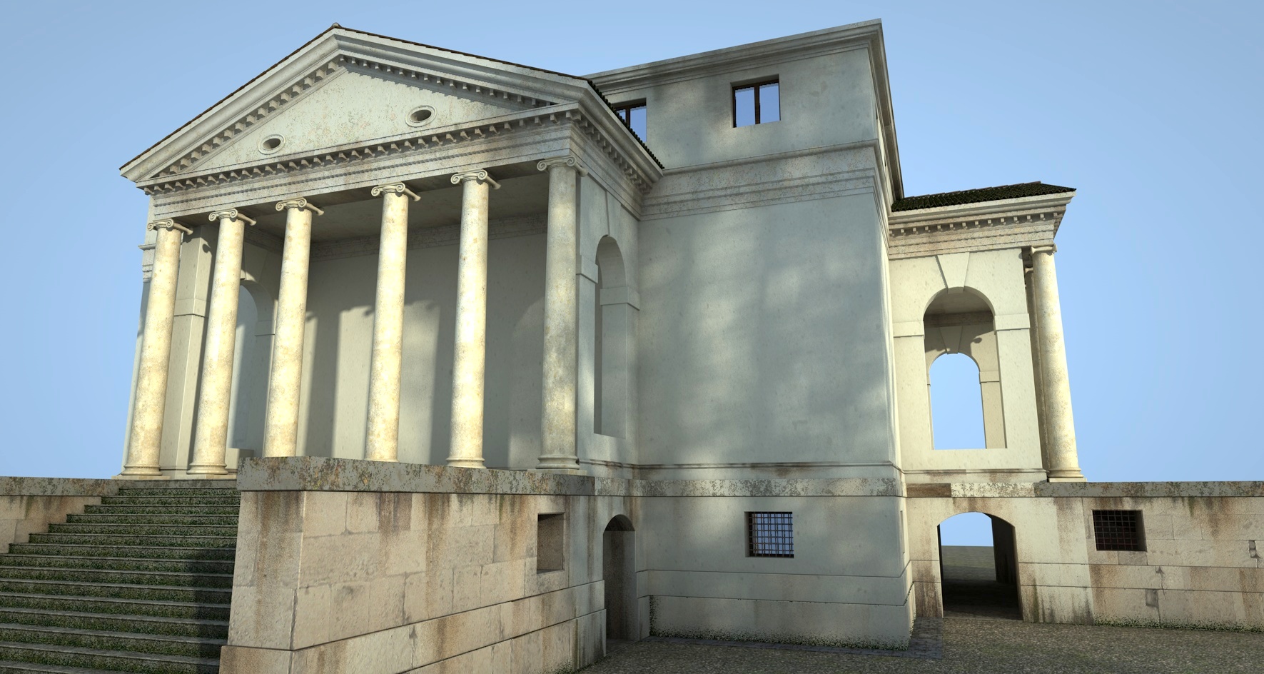 Innanzitutto faccio i miei complimenti..e se é lecito volevo chiedere come hai fatto ad ottenere l'effetto delle colature e gli invecchiamenti sulla parte inferiore della villa...