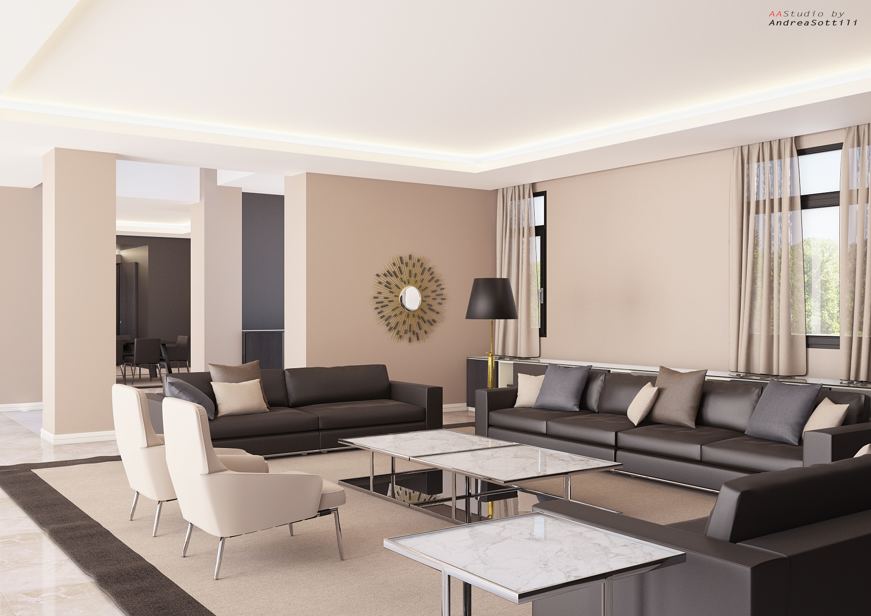Per quanto riguarda ciò che c'è alle spalle della camera la tua osservazione è giusta. Considera che in soggiorno, oltre alle finestre visibili, alle spalle della camera ci sono 5 porte finestre da 280x290 cm, stessa cosa in camera da letto, una porta finestra da 280x290 cm e tre finestre da 70x240 cm. Inevitabilmente gli ambienti risultati ricchi di luce e poco contrastati. :@