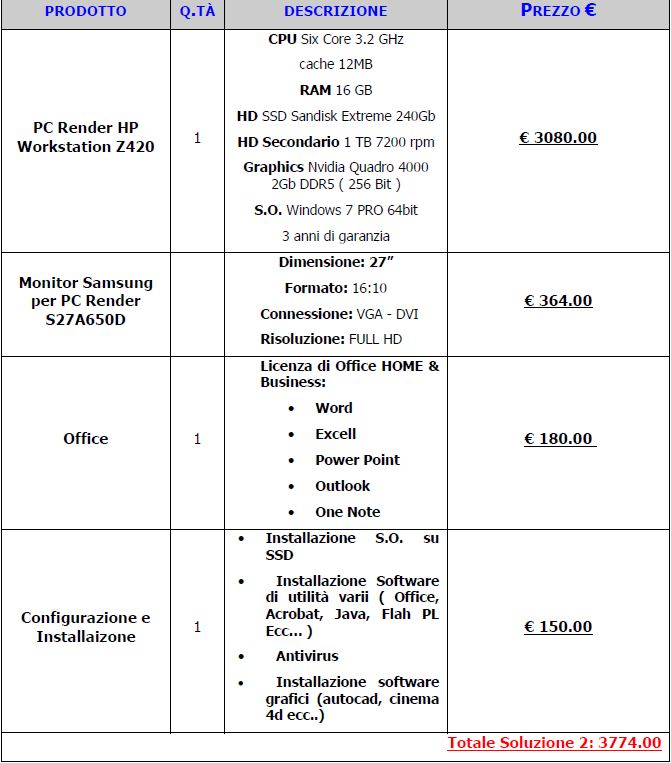 io invece opterei per una macchina per modellare non troppo costosa ma adeguata e userei dei nodi di render, a mio avviso avrebbe prestazioni nettamente migliori..chiaramente una soluzione del genere può essere controproducente se non si è in grado di risolvere problemi qualora si venissero a creare..