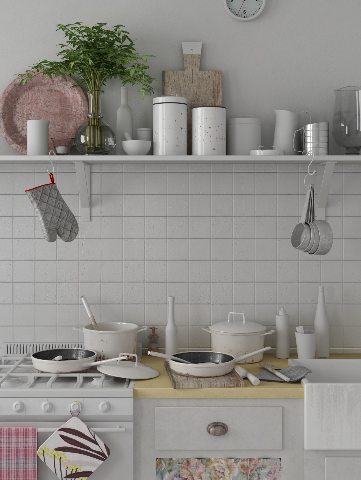 ho un po' poco tempo, ma sto andando avanti, mancano da texturizzare alcuni oggetti (specie la...cucina!) ed alcuni da rivedere anche nella modellazione, il guantone da cucina soprattutto...
