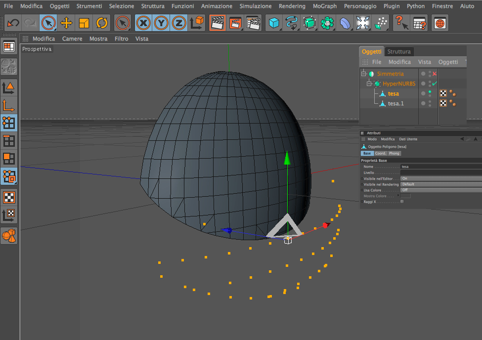 - Ho due semisfere convertite di cui una più grande che cosituirà, dopo averne cancellato i poligoni, il percorso su cui connettere i suoi punti con quelli di quella più piccola