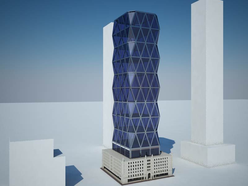 Ciao Talpa, mi sembra promettere bene... il modello appare molto curato, anche se non darei tutta quella trasparenza alla torre... aggiungerei qualche dettaglio nell'intorno, tipo strada e qualche altro edificio, anche lasciandoli bianchi ma in modo da avere un riferimento di scala e non farlo sembrare costruito su un foglio di carta..
