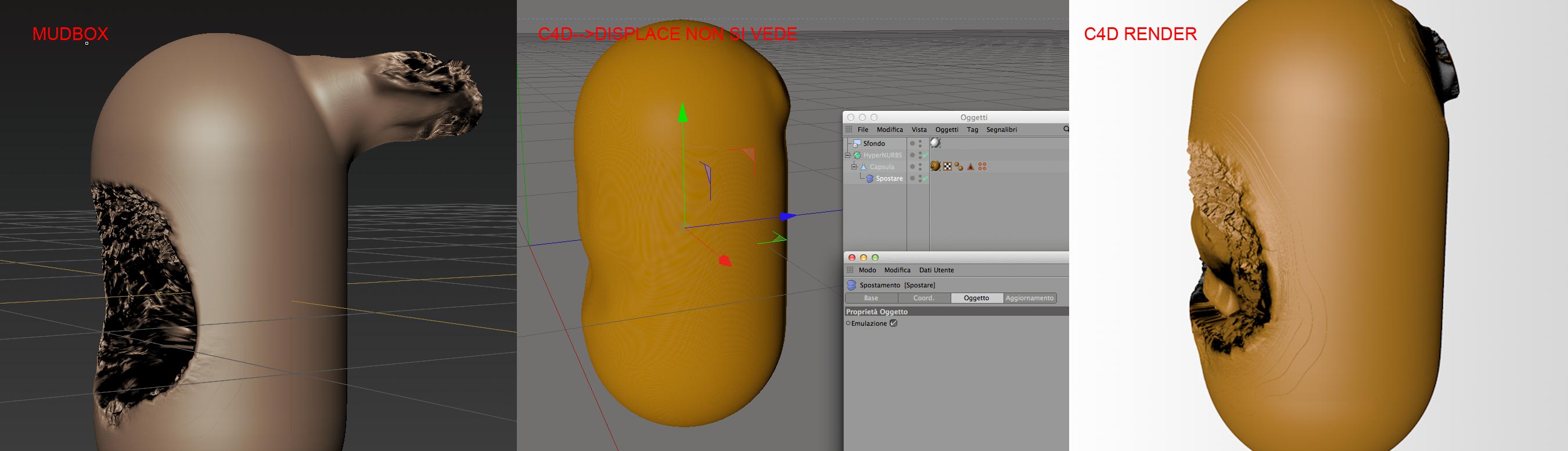 Grazie per gli aiuti, intanto! Venendo alla questione, 'emulazione' è una voce che simula il canale displacement della texture applicato all'oggetto, metto uno screenshot del pannello per capirci..